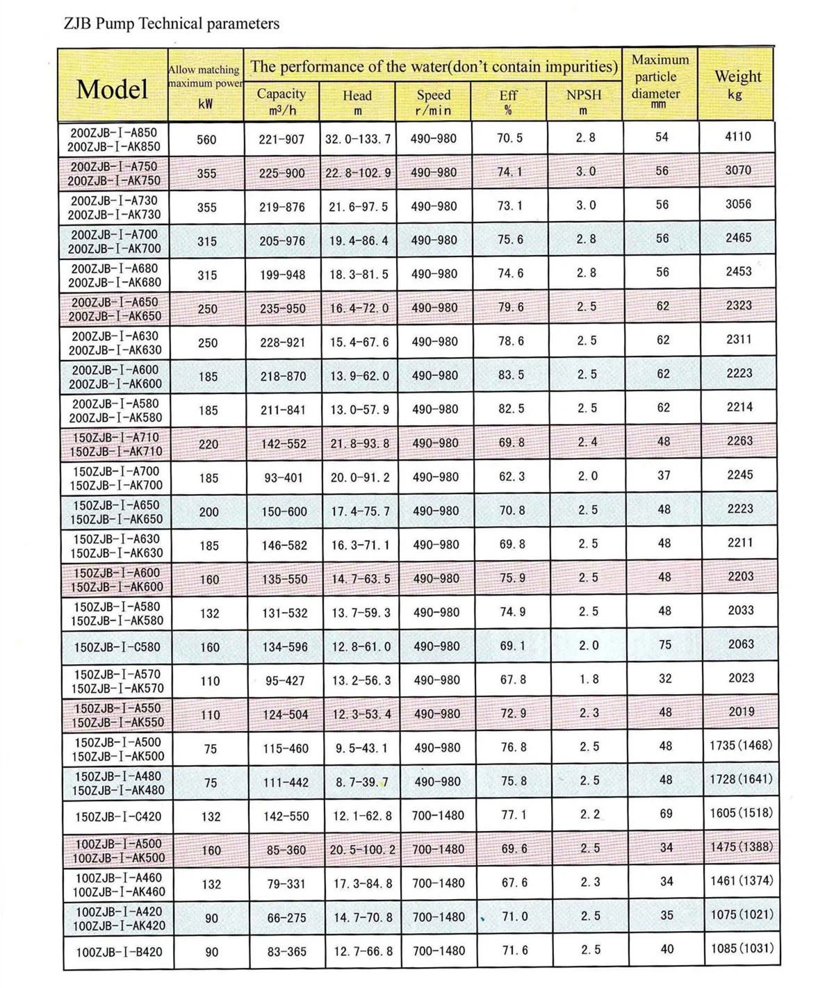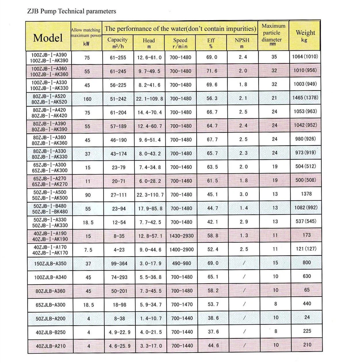 Scopul pompei de șlam trei tehnologia puzzle- lite scurt, etanșare dură, consum mai multă energie, suntem fabricați în special tipul ZJB(c) acum pompa de șlam în două faze conform designului tehnologiei. Datorită proiectării puterii de apă a pompei de nămol, prin consiliere suficientă, astfel încât pompa de nămol poate păstra o capacitate bună ca următoarele caracteristici: